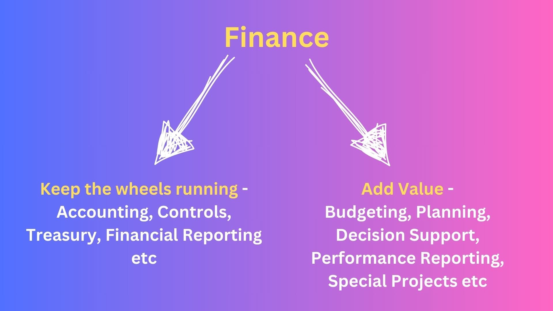 I believe finance department has the best vantage point to add value to ensure a company's strategy or objective are being met. How?
