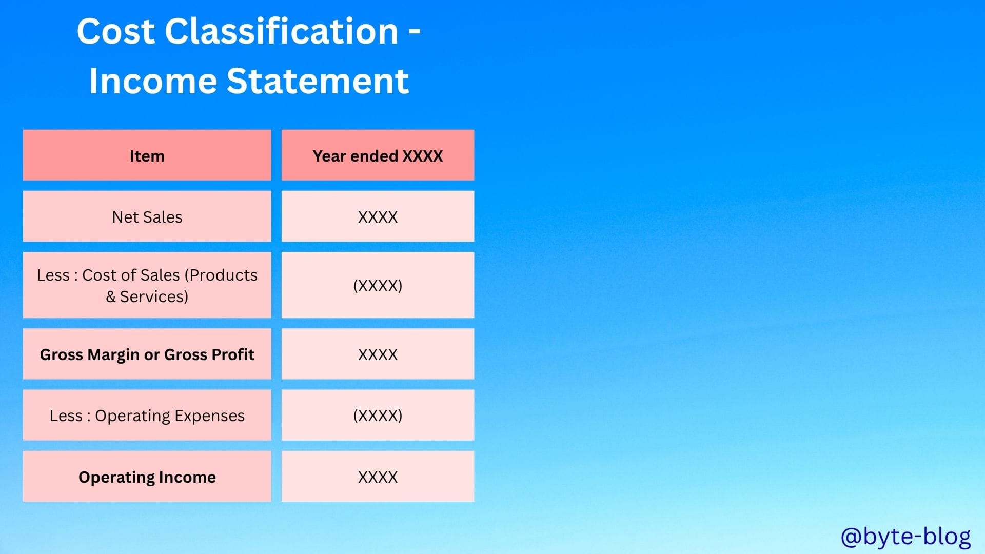- Classifying income & costs so that the reader can know from where & how much the company earns it's revenue & where does it spend to earn that revenue.
