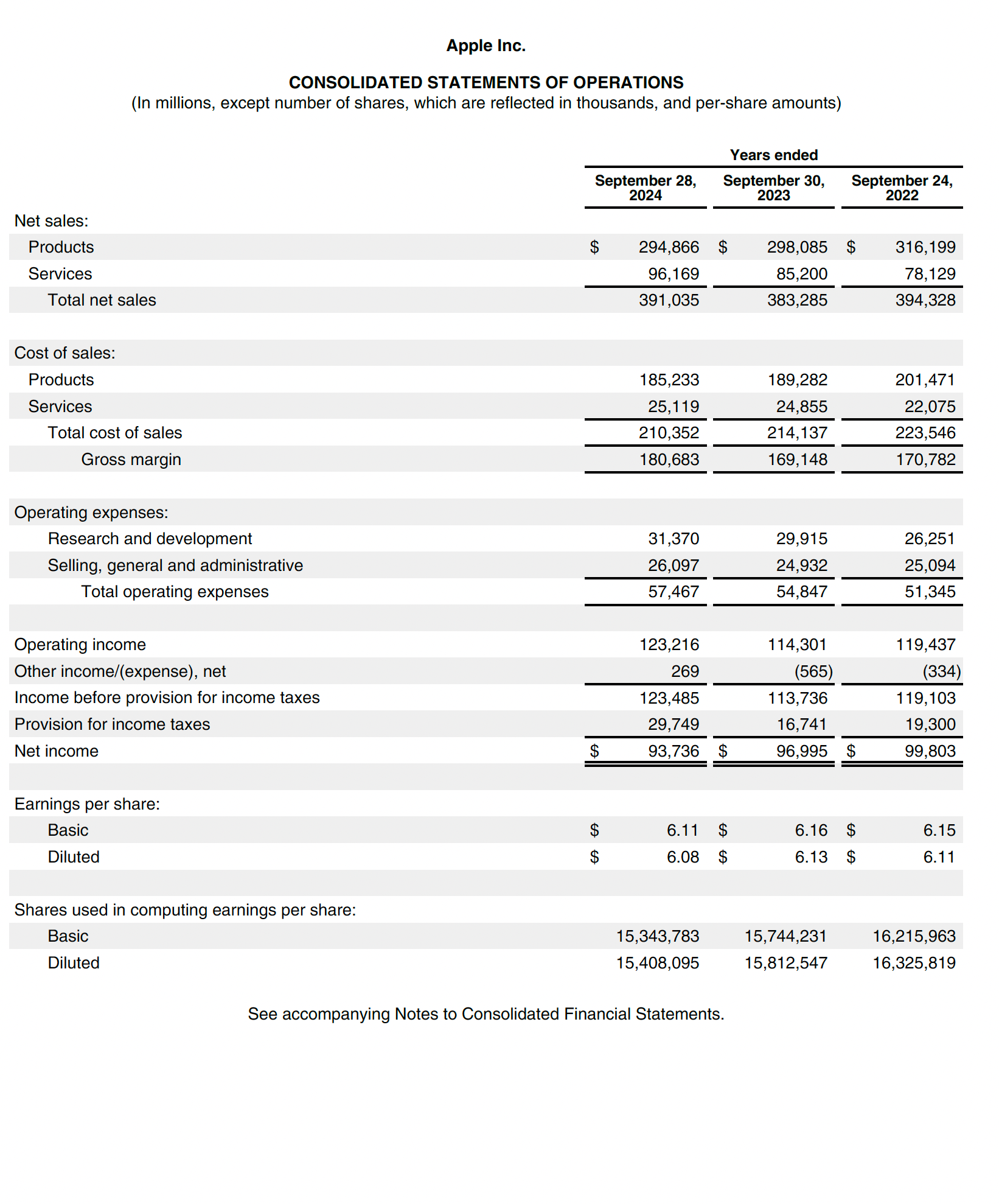 From the income statement, can Jack make out which costs are fixed or which are variable? Let us revisit the income statement from Apple :
