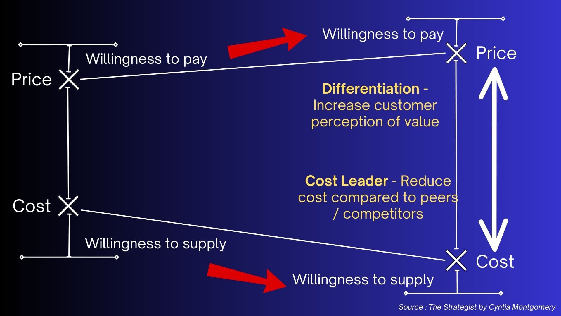 This reminds me of a visual I shared in Week 6 of Strategy Bytes. See how the price point & cost moves from left to right.