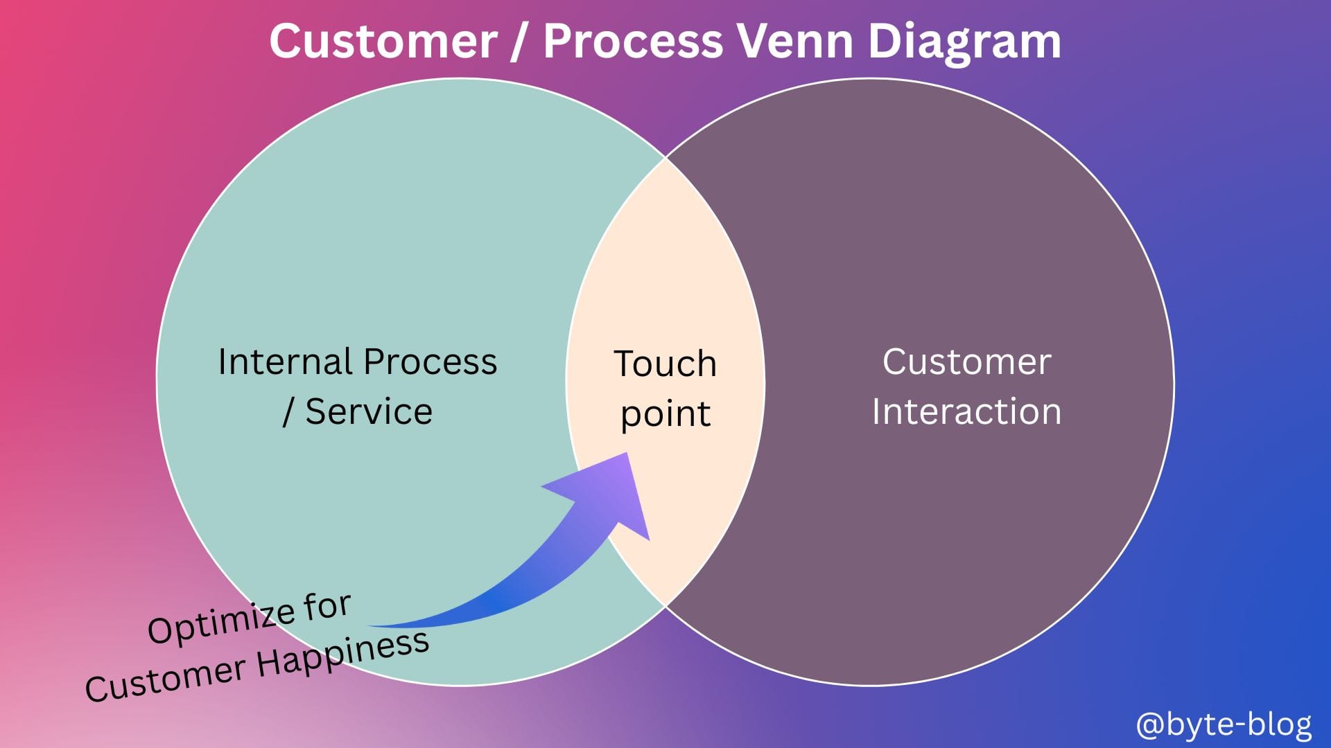 These are the touch points where the customer interacts with the company product or service. The company has to optimize customer experience & design the organization process around this objective without compromising on internal policies & costs as visualized below: