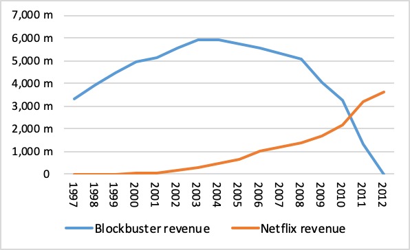 In 1999, it adopted a subscription based business model where instead of paying a fee for each movie rented, customers paid a monthly fee for renting DVDs.