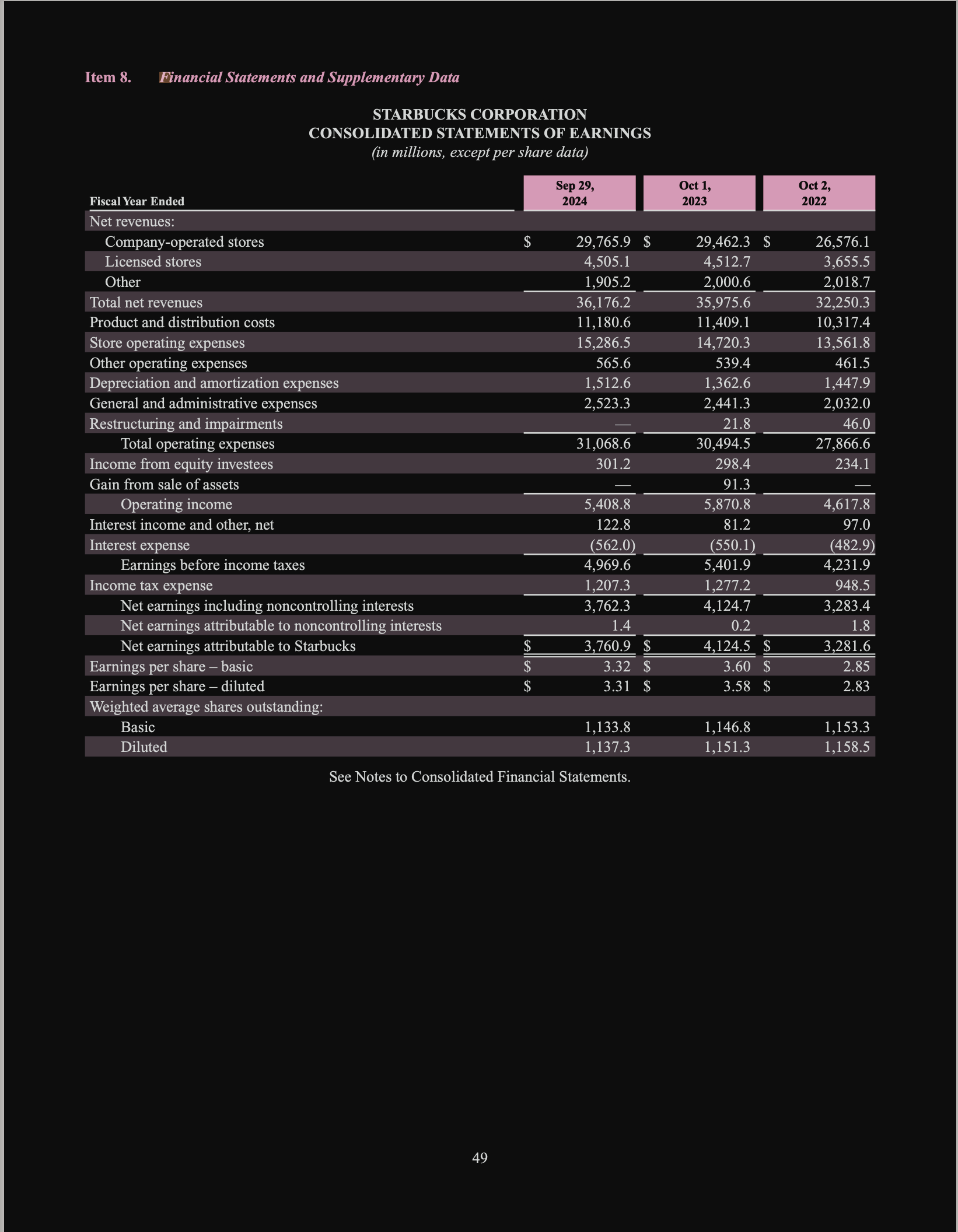 We ended with the Income Statement of Starbucks for the year ended 30th September 2024.