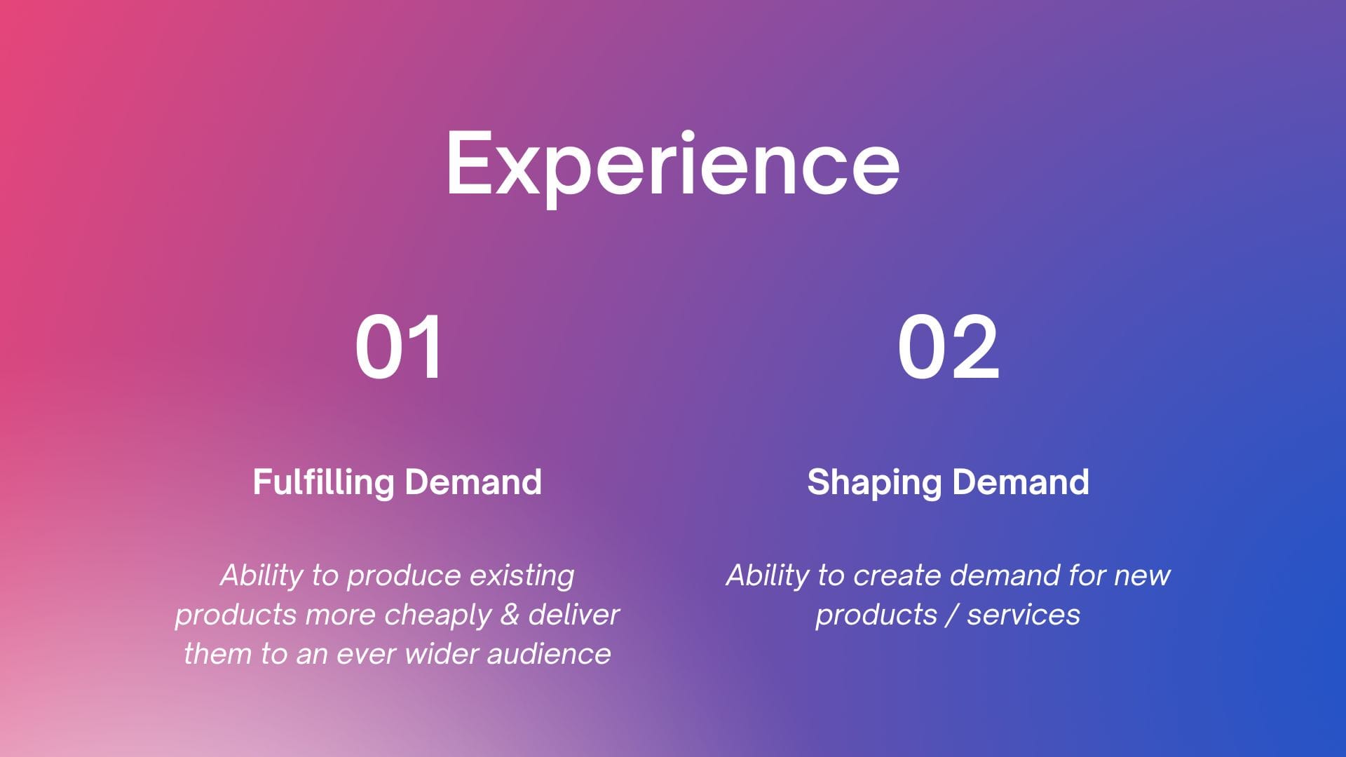 As per BCG, under this theory, there are now two types of "experiences" to maintain competitive advantage :