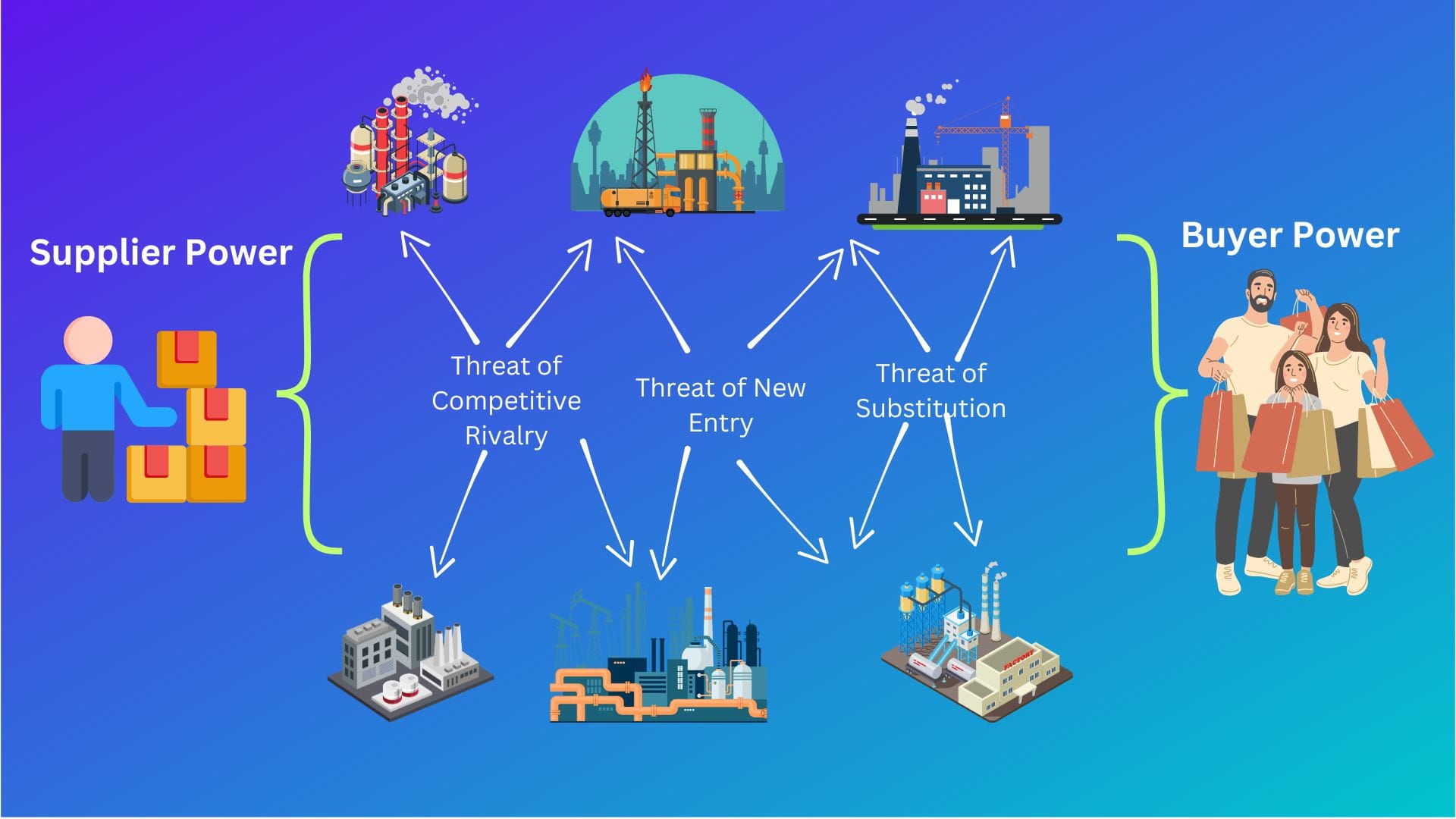 A market assessment tool used by businesses & analysts to understand the competitive dynamics of an industry. It helps them get a sense of what is happening in an industry, e.g, demand - supply, degree of competition, future prospects etc.