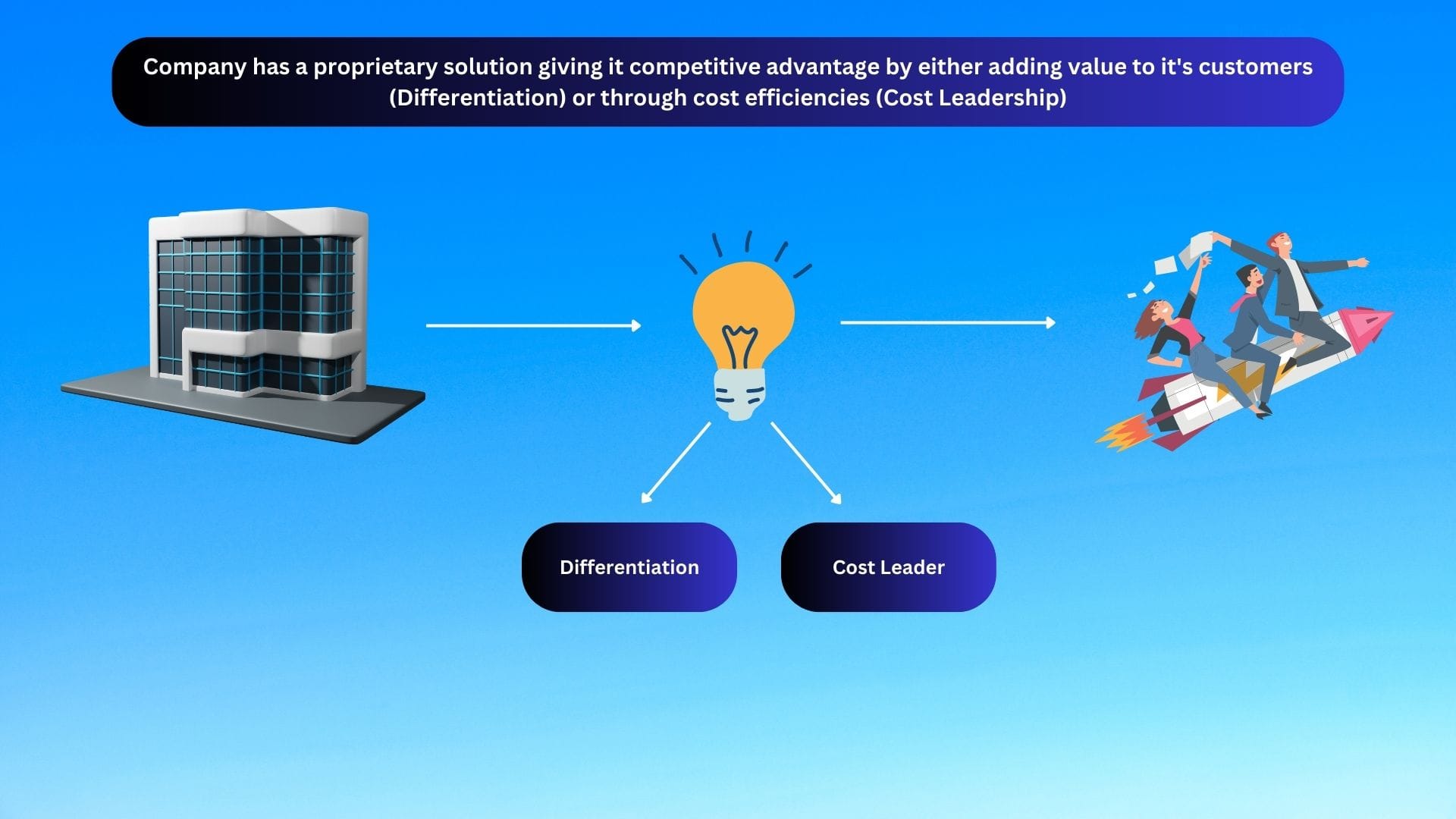The proprietary solution can be a superior brand, proprietary technology, superior data on customers, superior process or systems etc which results in either of the above.
