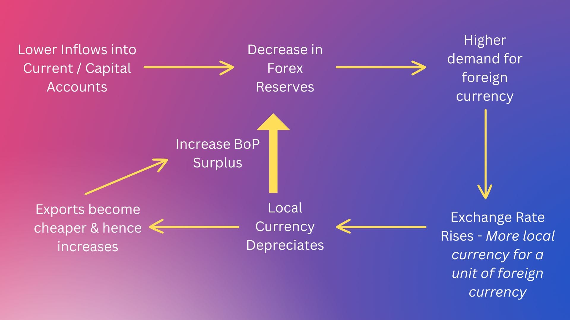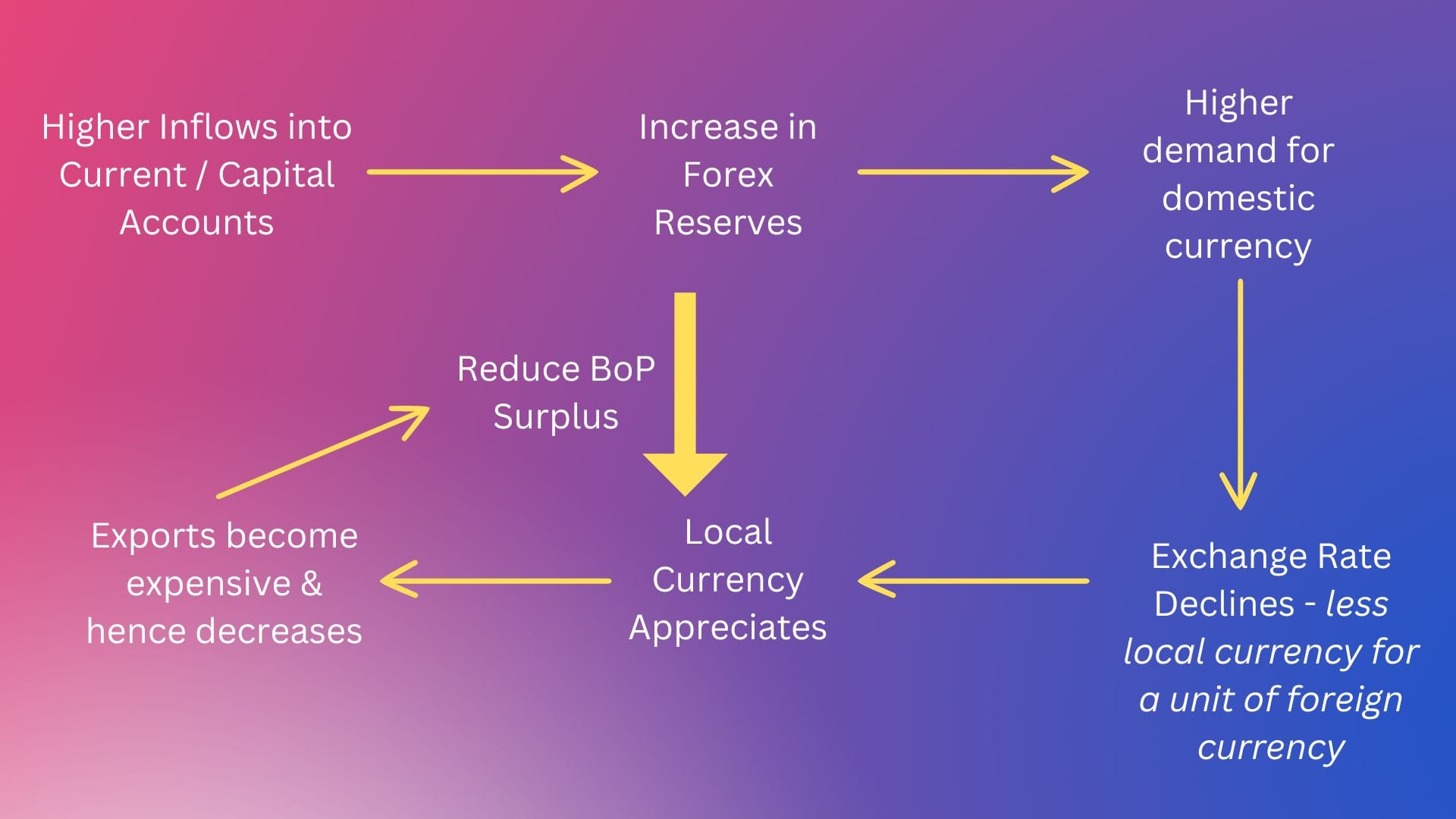 This increases the demand of goods & services from lower inflation countries which in turn increases the demand for it's currency compared to that of higher inflation countries. This in turn impacts the Balance of Payment (BoP) position.