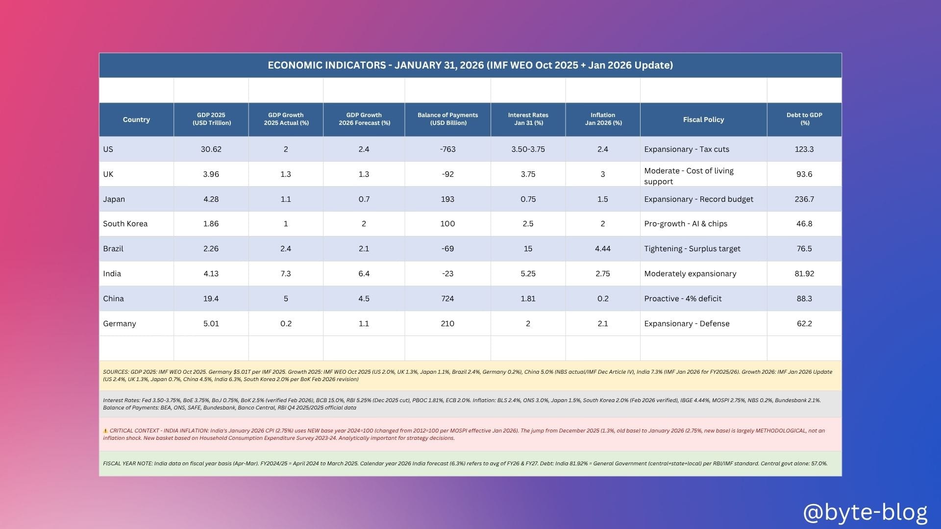 There are other factors or nuances which impact a country's economic policy & not only the variables discussed above, but at a high level, understanding the above variables helps.
